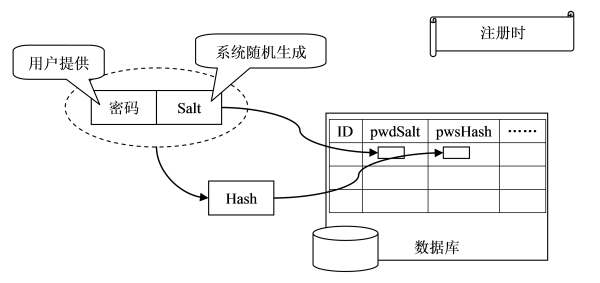 加 Salt可以一定程度上解决这一问题。所谓加Salt,就是加点“佐料”。其基本想法是这样的——当用户首次提供密码时(通常是注册时),由系统自动往这 个密码里撒一些“佐料”,然后再散列。而当用户登录时,系统为用户提供的代码撒上同样的“佐料”,然后散列,再比较散列值,已确定密码是否正确。