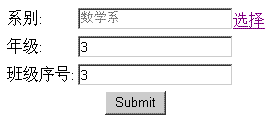 如班级和系别的关系,多个班级属于一个系。关系得主控方通常在多得一方。(具体hibernate怎么配置请参看《我的O/R MAPPING (HIBERNATE)方法小结》)那么我们的页面就是这样: