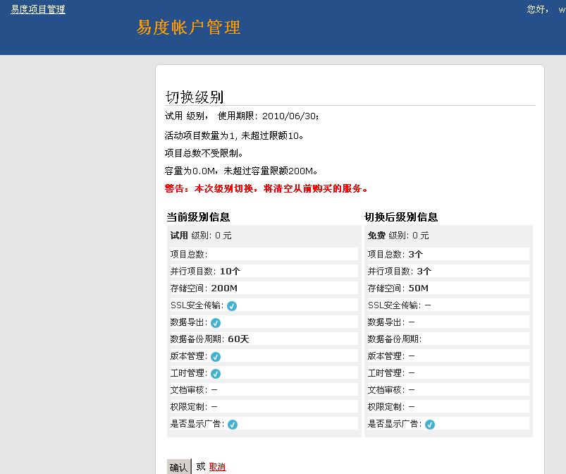 everydo.com体会用了一段时间,跳出这么个界面,什么事情大家自己看吧。切换级别试用 级别, 使用期限: 2010/0