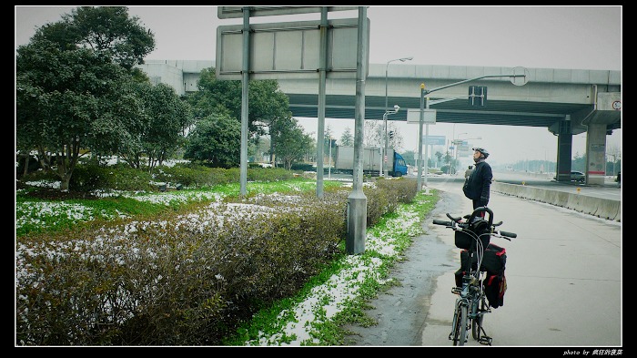 这次骑行,也可以说是目前我说面对的条件最恶劣的一次经历, 在严酷的条件下, 也让我认识到了装备的重要性, 真的是一分钱一分货, 一些便宜的东西让自己受苦不少, 首先就是手套, 我的普通全指手套还没出上海就汗湿了, 根本没法戴, 后来在路边的商店买了一双厚棉手套, 结果还没到太湖也被雪浸湿, 最后只好买了一双毛线手套外面再套一双橡胶手套来帮忙防水,这也是没有办法的办法;在这种严寒的雨雪天气防水装备可以说非常重要,冲锋衣和冲锋裤是必备的。我的雨裤因为不透气, 结果骑了一天到宾馆脱下来一看,里面全汗湿;快干内衣也是必备, 穿棉的会让你S的很惨;鞋子也很重要, 我的高帮鞋子防水很差, 还好出发的时候准备了不少世纪联华超市的购物袋, 上路就套一个,虽然麻烦了点。