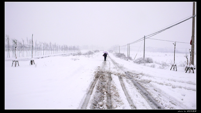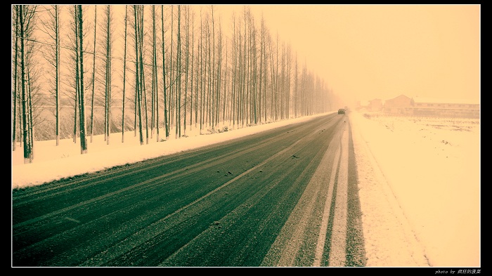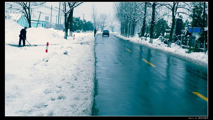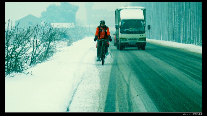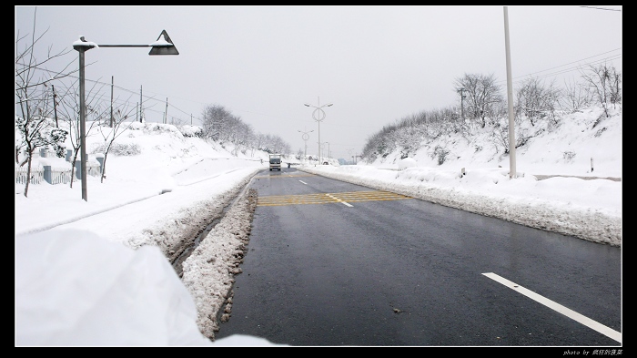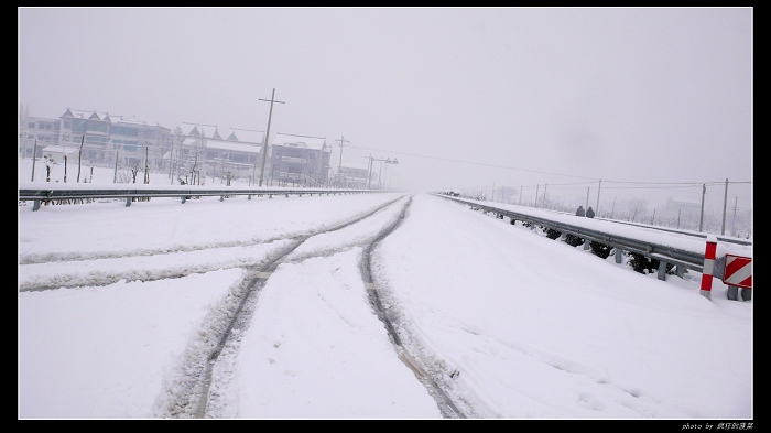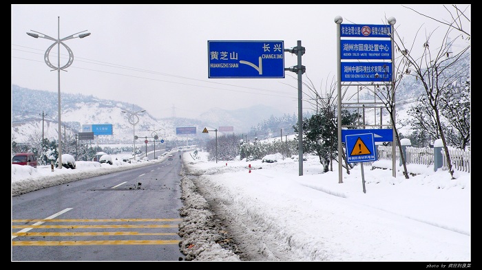 快到湖州,我们穿过了农村小道,上了318国道, 雪还很厚, 不过因为车多, 可以看到压出的柏油路面