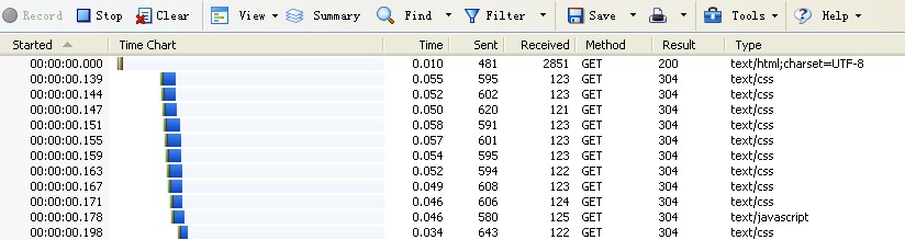 IE是绝大多数情况下值都是304,只有1次为'(cache)'还因按得太快没捕获住。