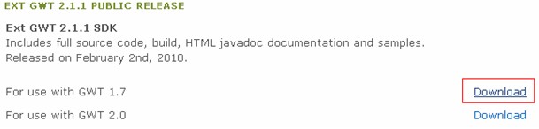 下载EXT GWT 2.1.1版本时