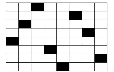 题目:在8×8的国际象棋上摆放八个皇后,使其不能相互攻击,即任意两个皇后不得处在同一行、同一列或者同一对角斜线上。下图中的每个黑色格子表示一个皇后,这就是一种符合条件的摆放方法。请求出总共有多少种摆法。