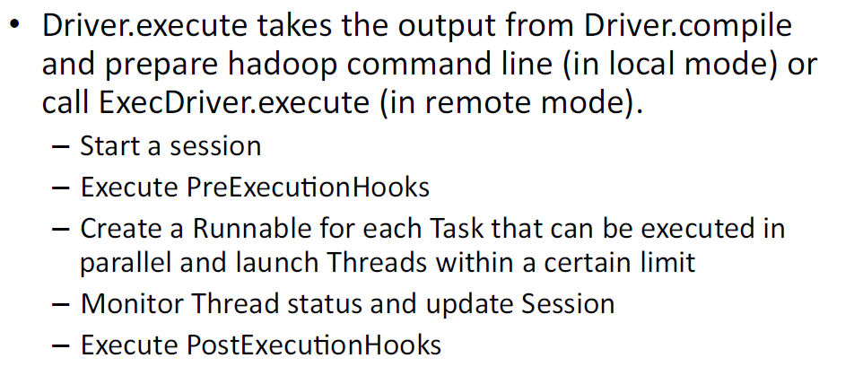 Driver.execute() // 运行命令生成的Task(一个或多个)