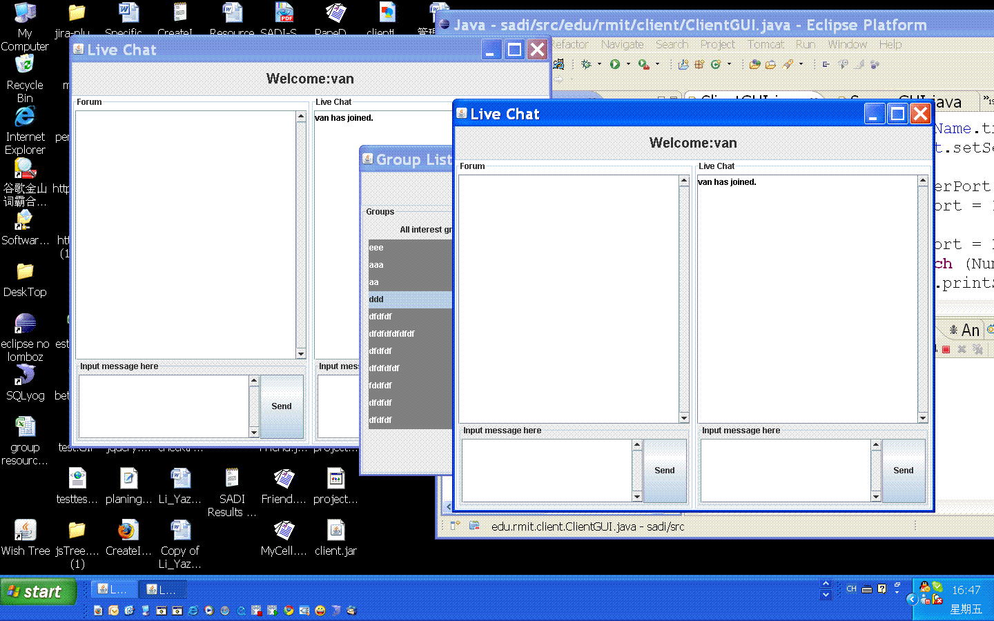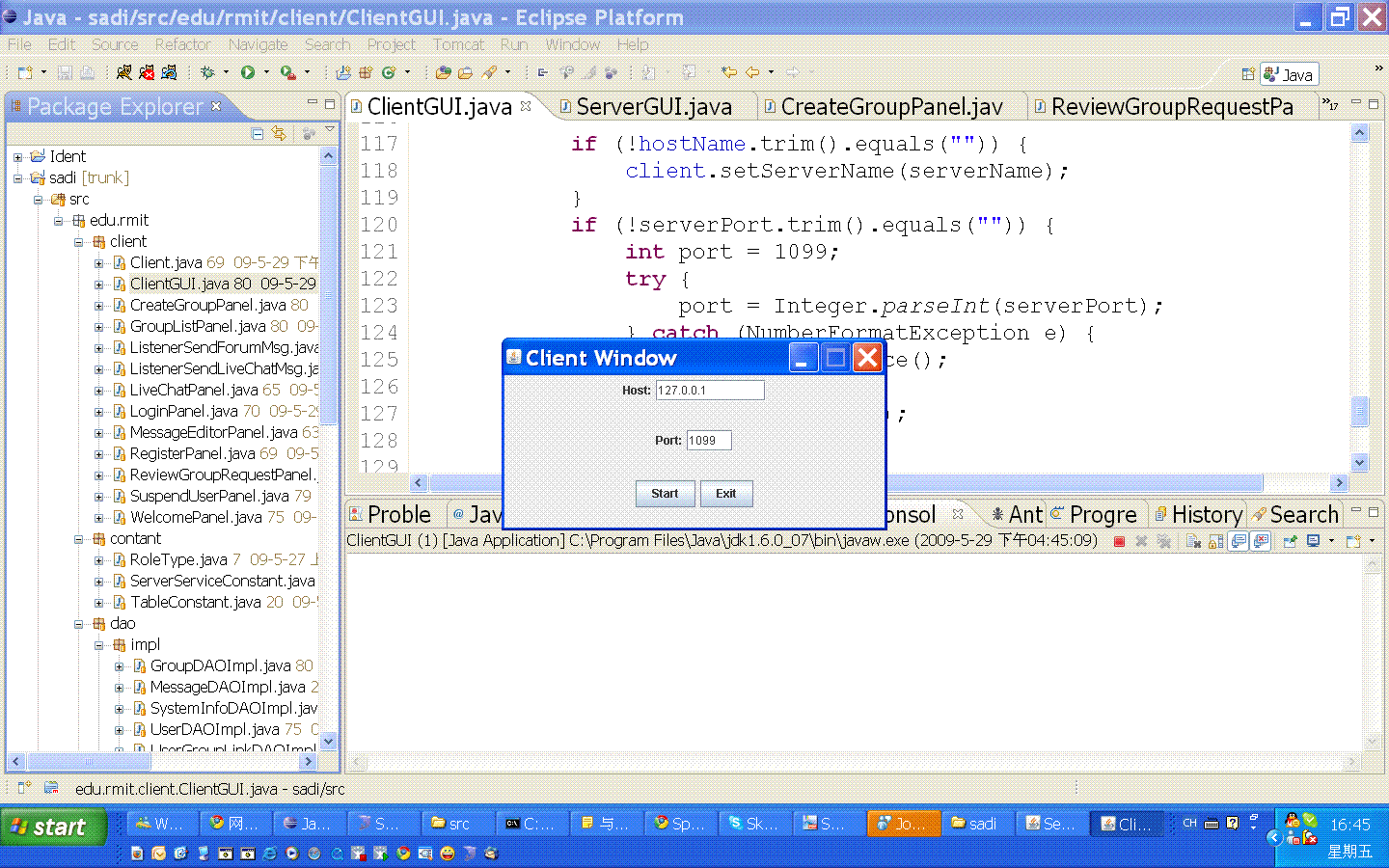 我学习RMI的时候做的一个东东 用RMI做了一个很简单的聊天系统[size=large;]代码写的很烂,欢迎大家拍砖。。。。。[/size]下面是代码:http://asialee.iteye.com/topics/download/7c85166d-ff2f-3839-8d41-e8e3fe4badf7