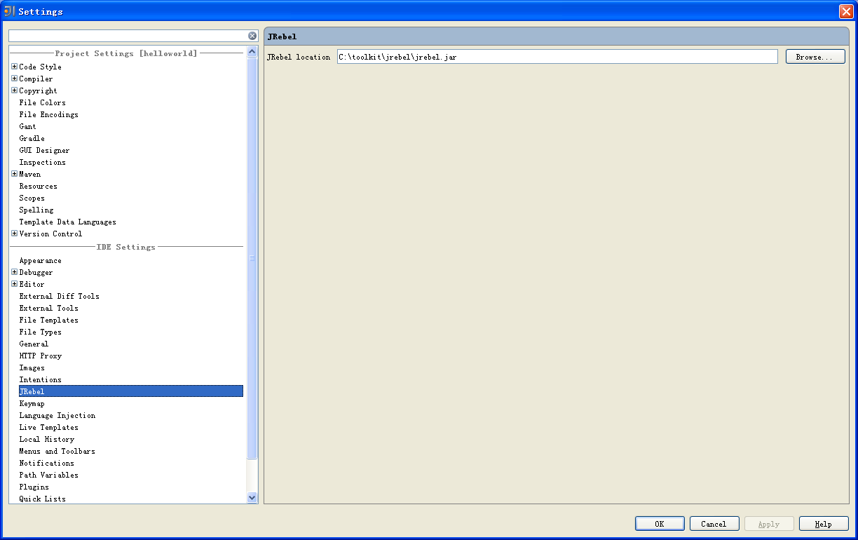 JRebel: Reloading class 'demo.helloworld.snippet.HelloWorld'.
