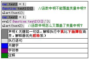 顺便留个广告链:学习js语言的QQ群70486724 1 楼 qinchong 2011-07-05 解释器不同解释的顺序是有一定差别的,图片中的代码如果在firefox中,第一次alert(test1)出来的是函数,IE和Chrome中同楼主所描述。 2 楼 wmingjian 2011-07-10 你用FireBug测试的这段代码吧?我新建一个test.html文件,用然后FireFox浏览器通过file:协议访问这个文件测试结果是第一次alert(test1)出来的是数字1。我所知的用FireBug测试这种声明的顺序是有问题的。