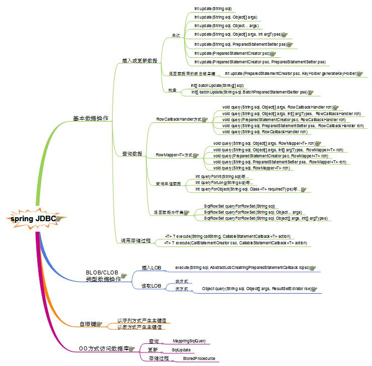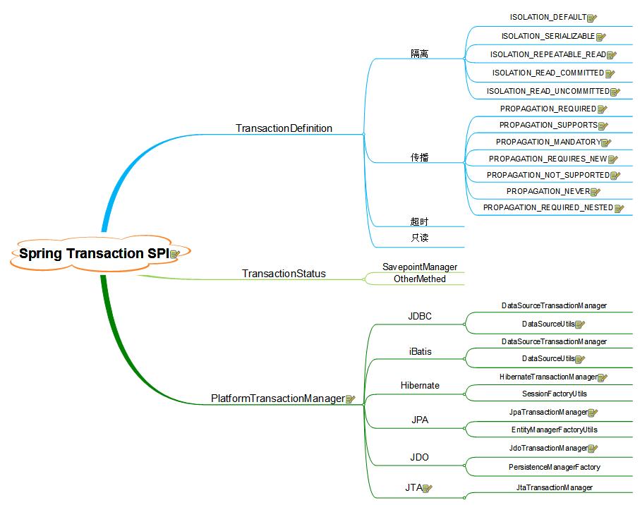 Spring事务管理和SpringJDBC思维导图 本人根据《Spring3.x企业应用开发实践》一书的相关章节整理制作了Spring事务管理和SpringJDBC两个部分的思维导图,帮助跟我一样的初学者对这部分的知识建立一个整体的架构,将分散的知识点串联起来。SpringJDBC的思维导图:SpringTransaction的思维导图:注:附件中的文档可用MindMapper打开