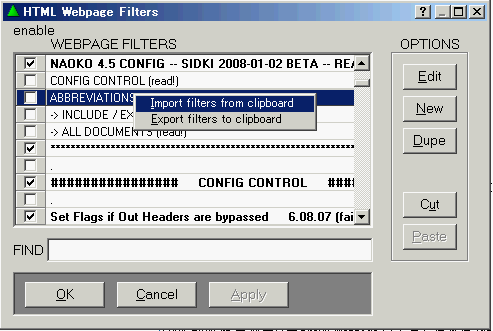 COPY上面的代码 然后打开 prox的Webpage窗口 点右键 选择 Import filters from clipboard 然后保存就可以了 如下图所示