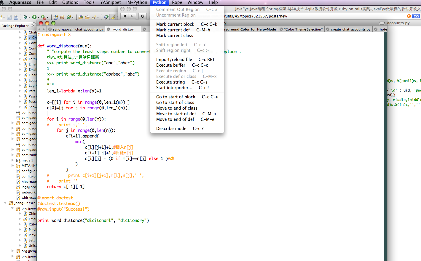 Aquamacs (Emacs on Mac)配上PyMacs,Rope简直就成了Eclipse for Python.
