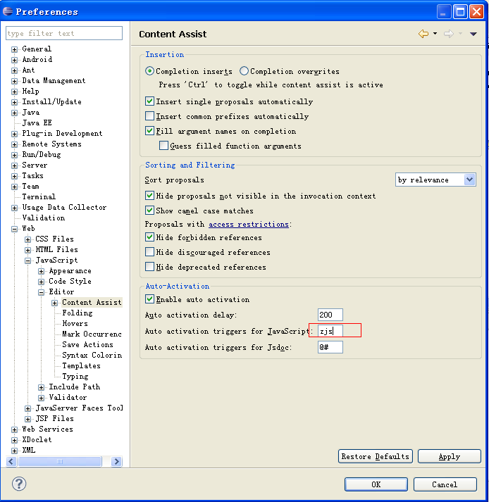 1.打开eclipse→Windows→Preferences→JavaScript→Editor→Content Assist