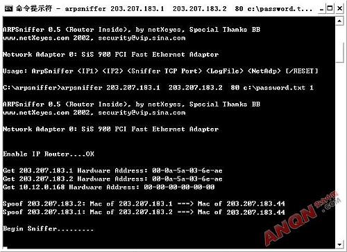 “Arpsniffer203.207.***.1203.207.***.280 c:/password.txt”;