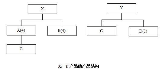 自己设计两种产品X,Y,产品结构以及BOM如下: