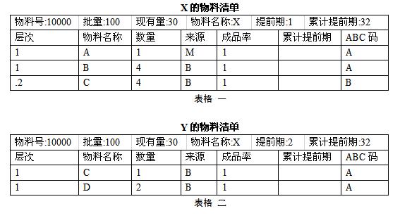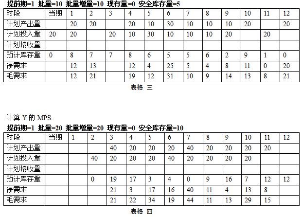 ERP运算实例自己设计两种产品X,Y,产品结构以及BOM如下:计算X,Y的MPS,以便于进一步MRP运算,过程和结果如下: