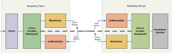 JBoss-Remoting基于Java串行化机制或JBoss自己的串行化实现来将请求转化为对象字节流。