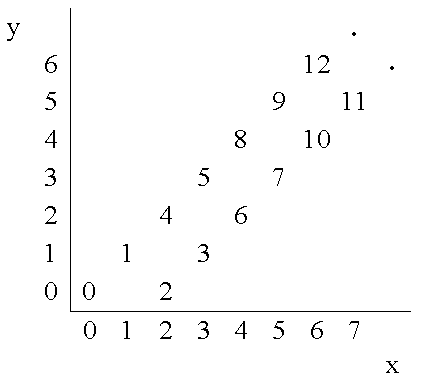1414:给出前面几个数排列规律。任给一对坐标,求对应的数字是多少。