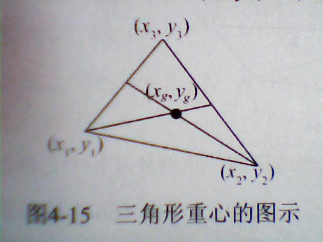所谓三角形的重心就是三角形的外心,即中线交点,如图,重心坐标为(xg,yg)