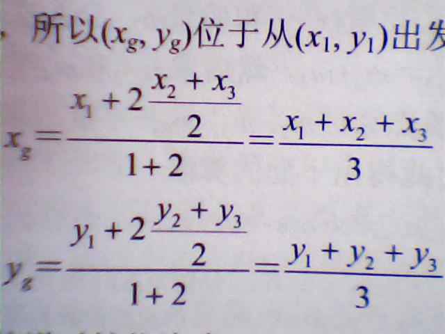特殊地,质量均匀的三角形重心: