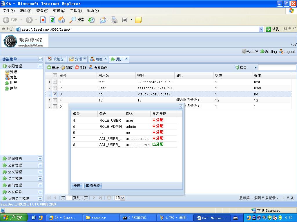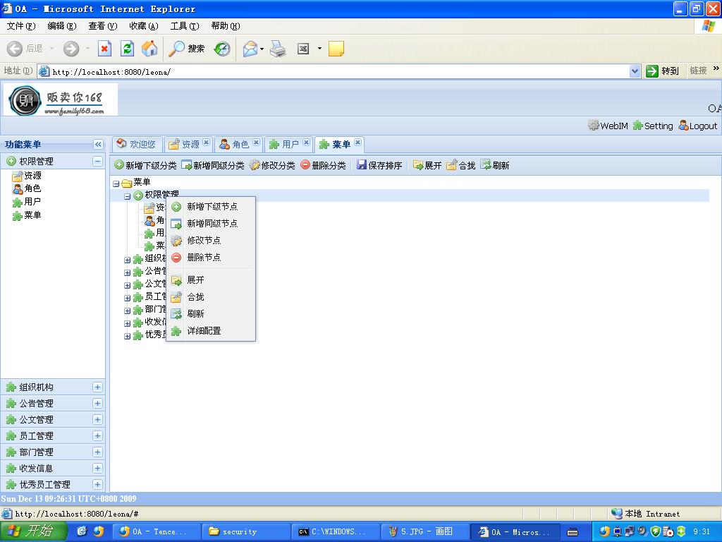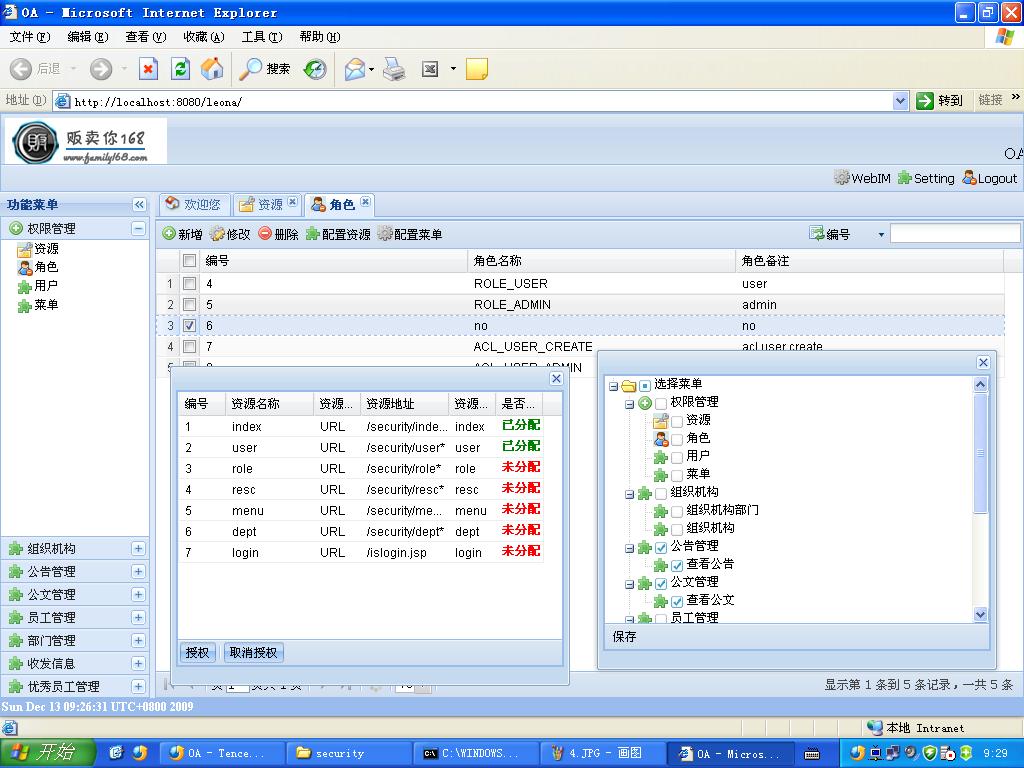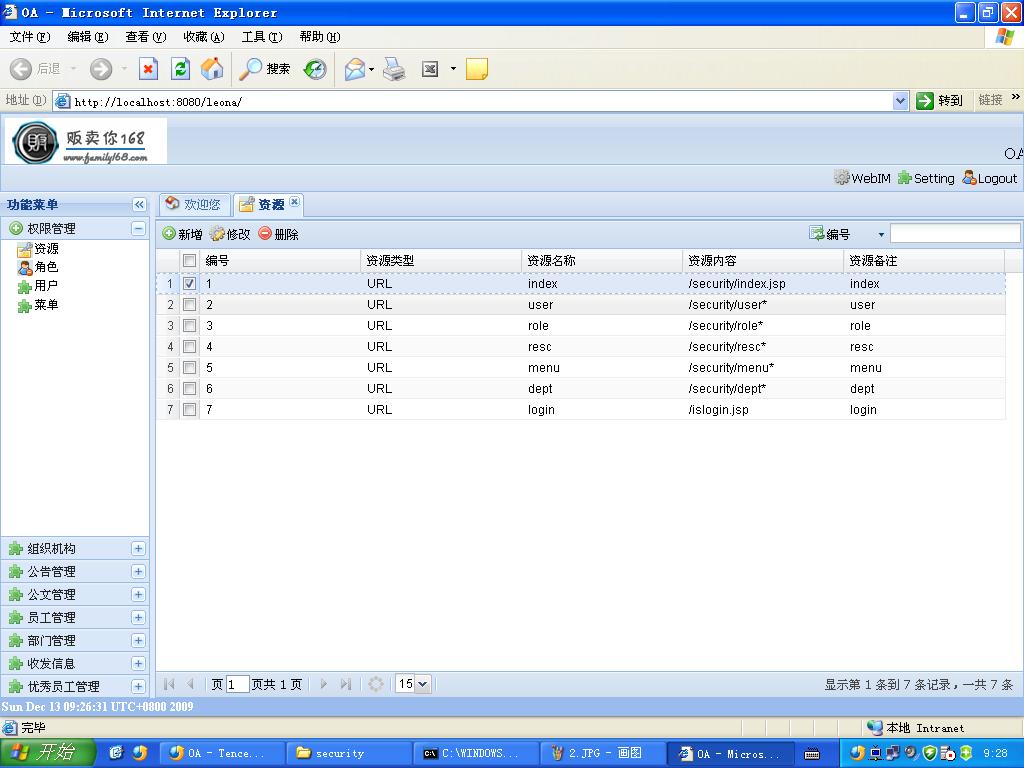 4 Family168开源产品OA,融合了ExtJS、SpringSecurity。。。
