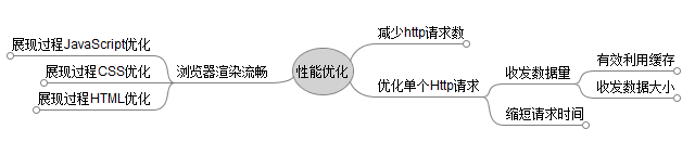 YAHOO将Rules分成Content, Server, Cookie, CSS, JavaScript, Images, Mobile七类是一种思路,让开发这快速定位到技能相关类别.但是作为前端很可能要同时关注其中N个类别.我们从另一个角度来看,网页的展现有loading阶段和render阶段,render阶段还是js,css,html三类前端技术,而在loading阶段我们则需要关注http:减少http数,优化单个http的各个时间段,减少收发数据量,有效利用缓存等等,如下图: