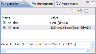 从javac的角度看,直接读outer局部变量可以用一个JCTree.JCIdent节点来表示,而这里则多包装了一个tag为JCTree.NULLCHK的JCTree.JCUnary节点。