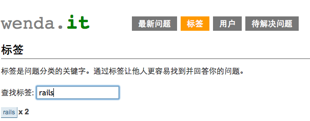 点击标签按钮可以查看已有标签,可以输入关键字查找标签,点击标签查看含有该标签的问题