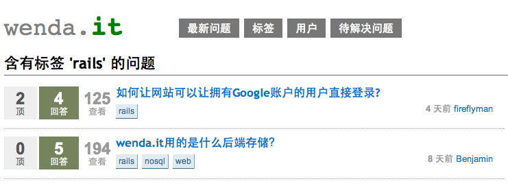 http://wenda.it/questions/4d1974631372ff1d41000005 2 楼 mysoko 2011-01-09 老大的源码写的很易懂,一直折腾java,没想到rails写项目那么简洁。。 3 楼 hideto 2011-01-09 mysoko 写道给了个bug:)
