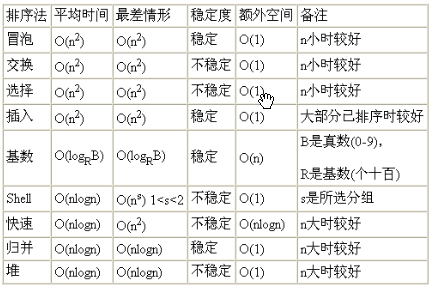 表格,大致总结了我们常见的所有的排序算法的特点: