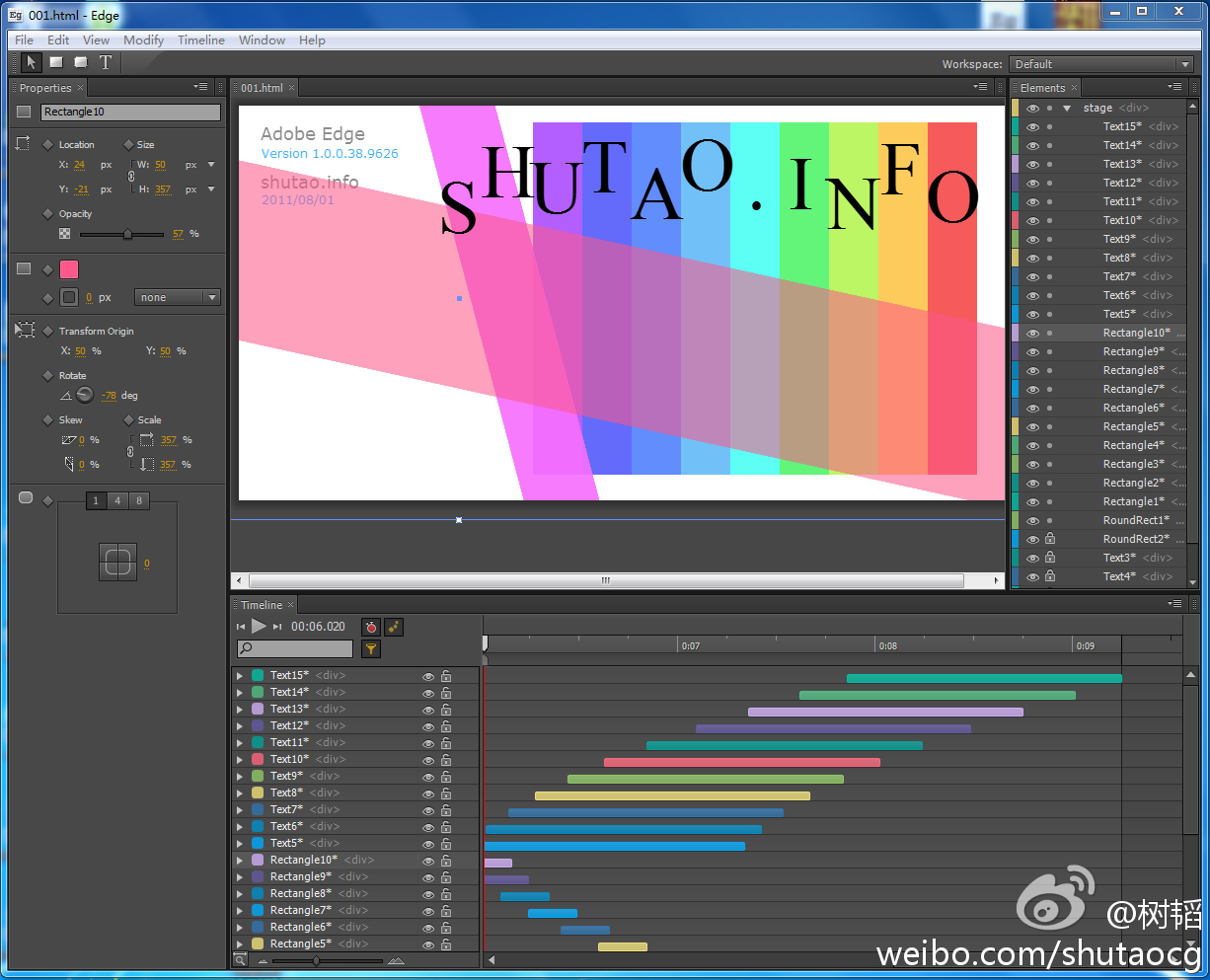 adobe edge试玩。 ADOBE这一腿是插定了。挺靠谱的工具。 http://shutao.info/html5/edgeMotion.html新浪微博的外链图片,如不能显示weibo.com/shutaocg