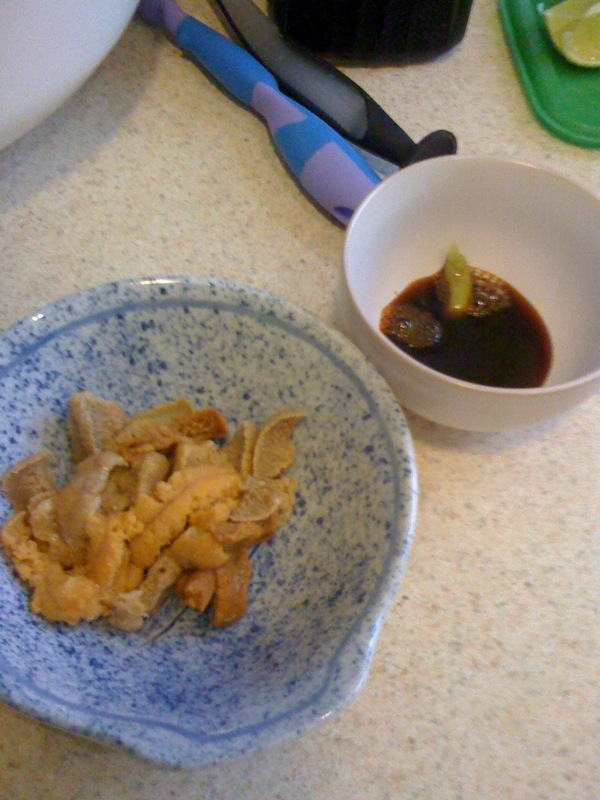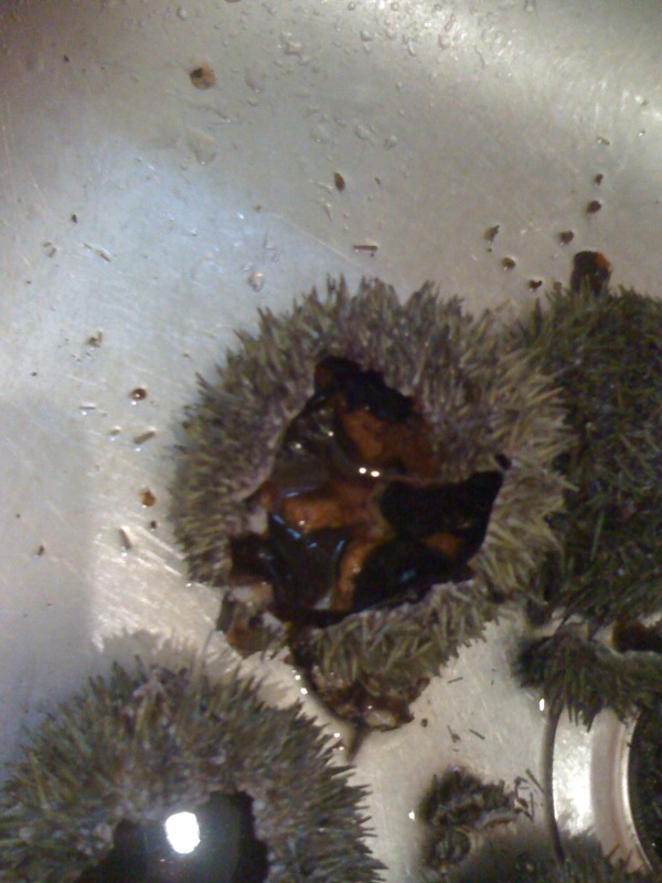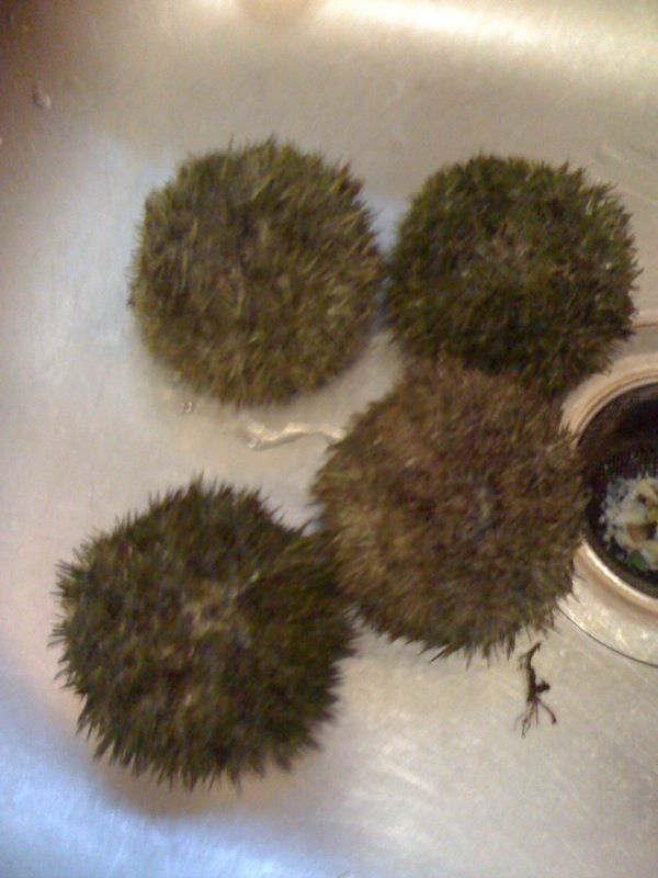 离题了... 上个星期, 在家附近的海鲜店购得鲜活海胆4枚... 遂向公司请假告知晚点进去...