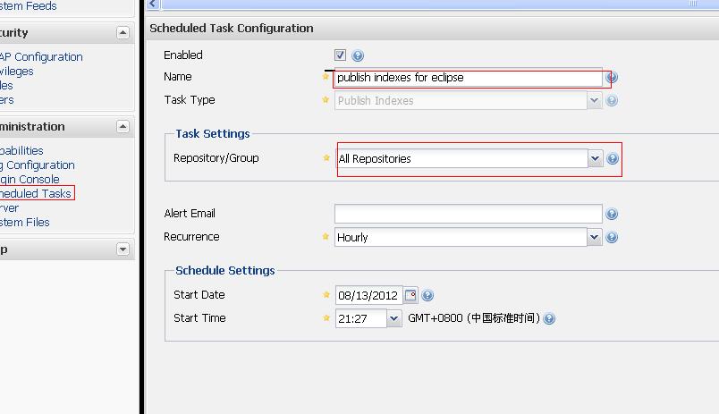 nexus-2.1.1安装及使用入门 1. 安装地址http://www.sonatype.org/nexus/解压之后先安装服务,每次开机自动启动然后新建一个定时任务,发布索引这样重启eclipse会更新nexus的索引4. 上传第三方jar