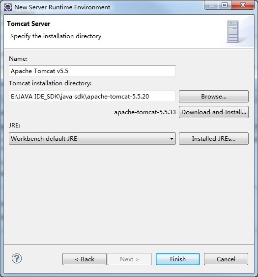 四、把你的tomcat安装目录填入Tomcat installation directory,然后就可以Finish了: