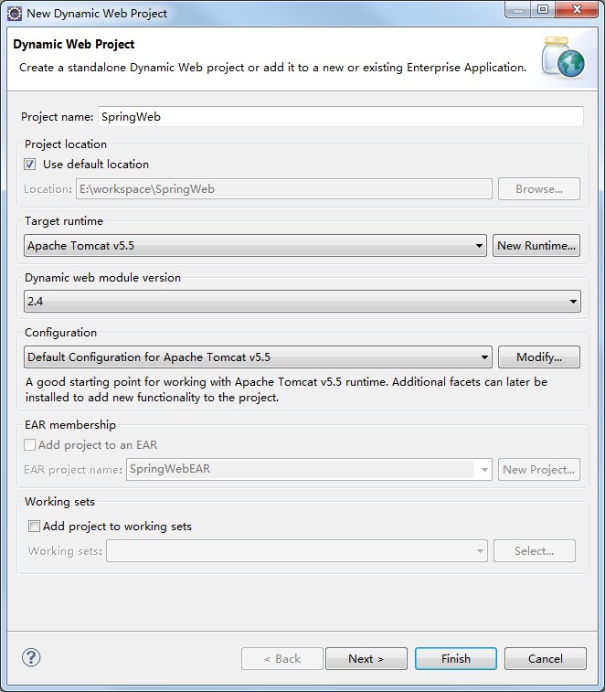 五、这个是最后的结果图,直接Finish就能成功创建一个动态网站项目。