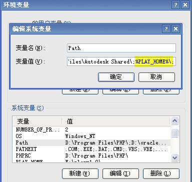 b)在系统变量里面找到Path,双击编辑它,在变量值的最后加上%PLAY_HOME%\