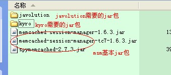 2.下载所需要的jar包,主要是msm本身的包和序列化所用的包,在附件中提供,msm的版本是1.6.3,kyro-serializer的版本是0.10,javolution-serializer的版本是1.6.3