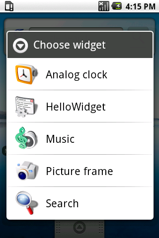 App Widget是Cupcake(Android 1.5)所提供的一個功能,這是一個很實用而且能有很大創意想像空間的功能。什麼是App Widget呢?請看底下的操作示範。