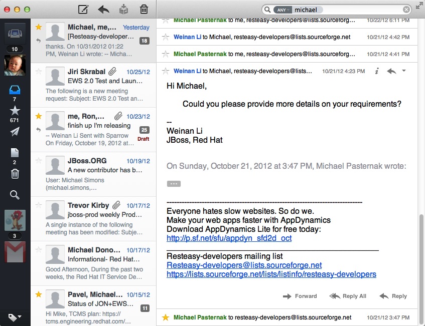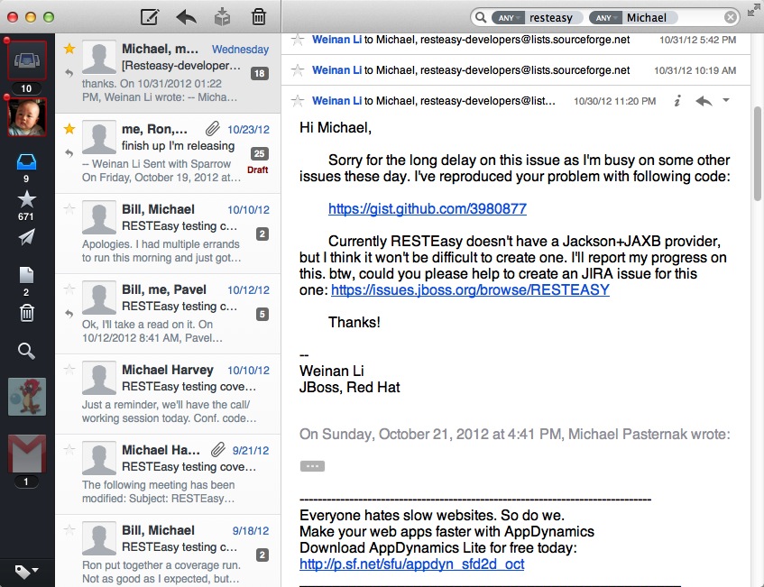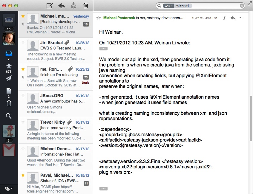 大意就是RESTEasy的Jackson是否支持JAXB标记。因为RESTEasy的JacksonProvider并没有支持Jackson+JAXB,所以应该是需要添加这部分的支持才可以。但是在真正动手之前,我还想和用户再沟通一下,这样有时候可以收集到一些你想不到的需求。于是我回复了一封邮件如下: