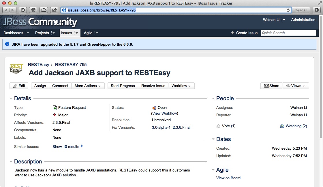 在这篇文章里,我将以一个RESTEasy的代码开发任务为例,记录我开源社区中的日常工作。其中包括我使用的工具,工作中的一些习惯和方法,以及工作流程。