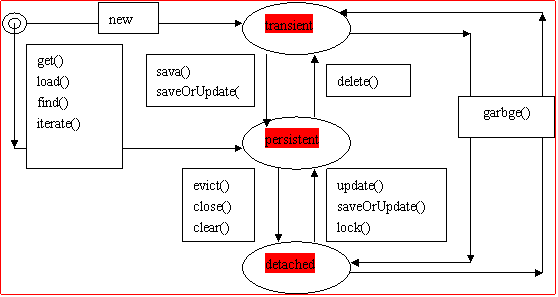 补充说明:既然我们已经知道了持久对象可以被Hibernate检测到进行更新操作,那么update是否还有用了?有,比如脱管对象就可以调用update来更新数据库中的数据,而调用update()方法后的脱管对象又变成了持久对象。 下面是三种对象状态相互转换的图例: