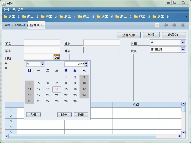 2. 所有控件均以JF开头,如:JFButton,日期控件名为:JFDatePicker