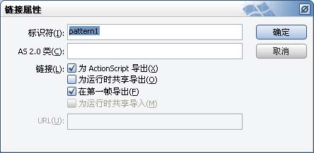 2.????新建一个flash文档,大小随意,将我们选定的这张图像导入到库中,并在库中直接为此图像设置链接.当前我们设置为pattern1,基本方法是选中库中刚导入的图像,右击选择链接,如下图所示: