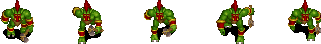 为了让精灵的行走更加逼真,程序在新位置重绘精灵图像前,还会更新精灵图像(切换至下一帧动作图像)。 举例,以下是一张魔兽战士行走动作的逐帧图片: