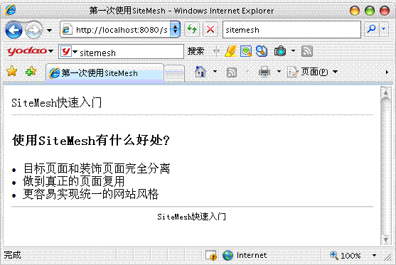 使用SiteMesh装饰页面SiteMesh框架是OpenSymphony团队开发的一个非常优秀的页面装饰器框架,它通过对用户请