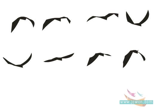 新建影片剪辑元件,名飞鸟。共16帧每隔1帧一个关键帧,共8个关键帧,这个并不要很精细,画出大概样子就行了。下面是放大200倍后的形状: