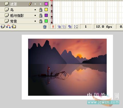 Flash打造唯美渔舟唱晚效果本例介绍使用Flash绘制唯美渔舟唱晚效果,教程详细讲解了鼠绘唯美的夕阳山水风景