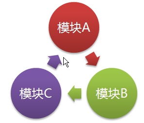 图 1. A、?B、?C三?个?模?块?相?互?依?赖?