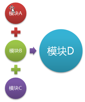 这?样?就?产?生?了?一?个?合?并?模?块?D,我?们?把?它?当?做?一?个?辅?助?构?建?模?块?,然?后?让?A、?B、?C模?块?都?依?赖?于?D模?块?,这?样?的?话?就?可?以?成?功?编?译?A、?B和?C模?块?,