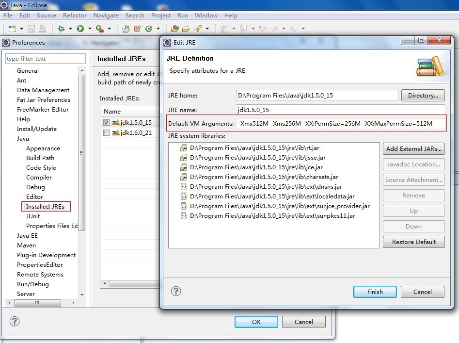 eclipse galileo中增加java虚拟内存 在eclipse中增加java虚拟机内存,参考下图:红框中的值:-Xmx512M -Xms256M -XX:PermSize=256M -XX:MaxPermSize=512M
