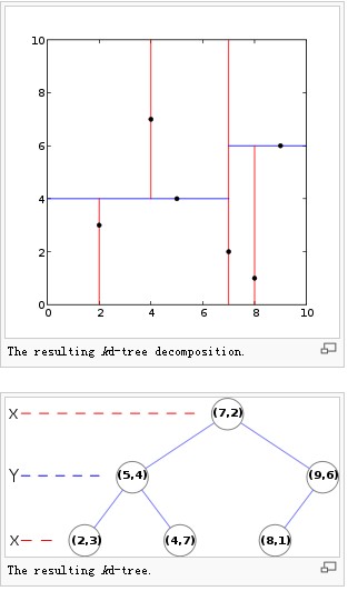 与二叉树相比,KD-TREE也采用类似的划分方式,只不过树中的各节点均是高维向量,因此划分的方式,采用随机或指定的方式选取一个维度,在该指定维度上进行划分;整体的思想就是采用多个超平面对数据集空间进行两两切分,这一点,有点类似于数据挖掘中的决策树。